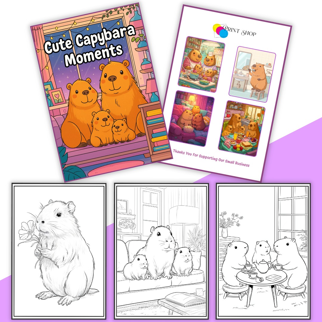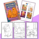 رسومات لطيفة لحيوان الكابيبارا في مشاهد هادئة وبريئة، تضيف لمسة من المرح والهدوء لتجربة التلوين الخاصة بك.