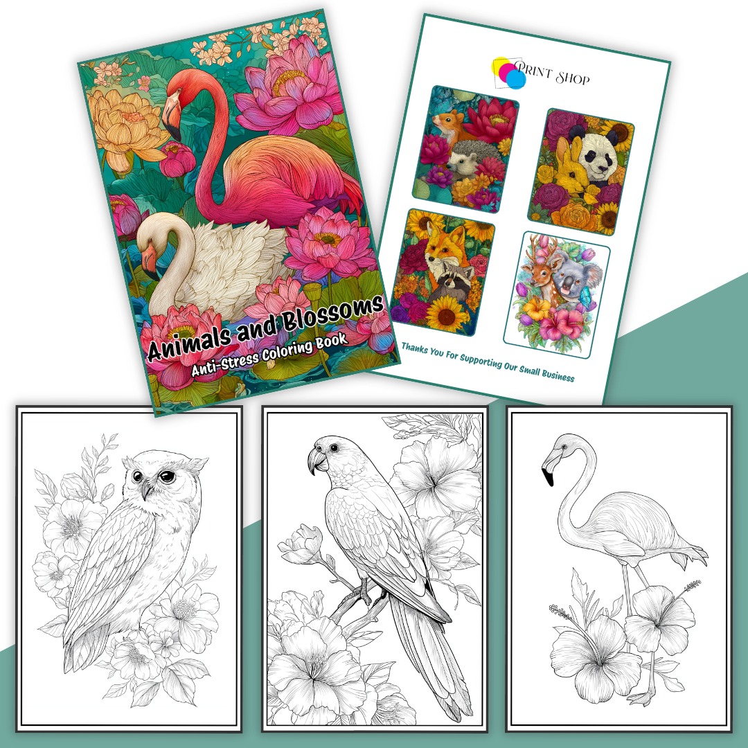 توليفة فنية بين الحيوانات والزهور في تصاميم متناسقة وأنيقة تمنح شعوراً بالهدوء والاسترخاء خلال التلوين.